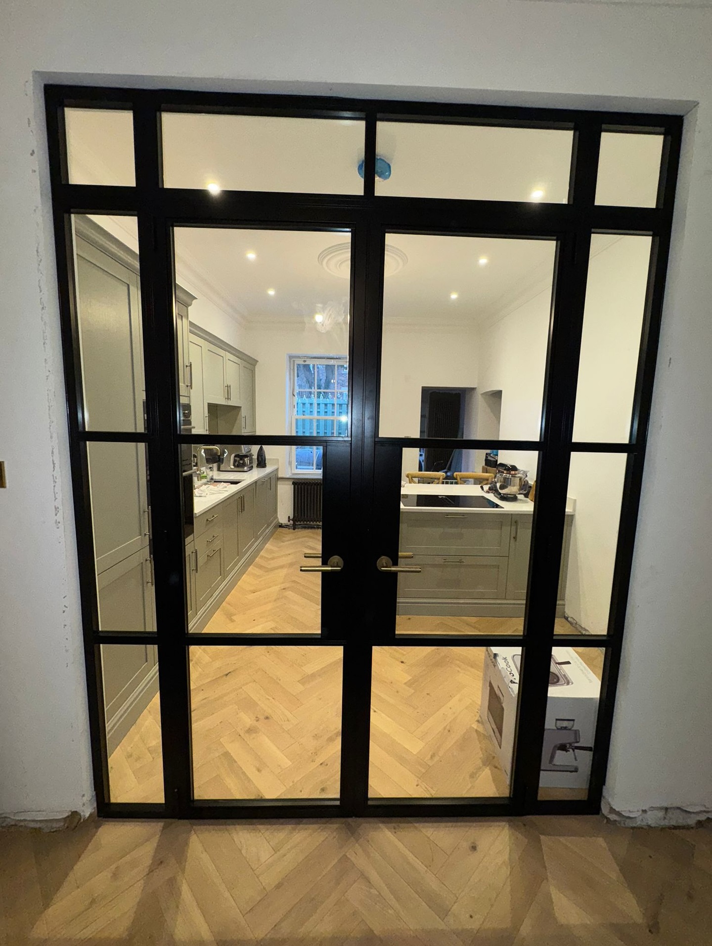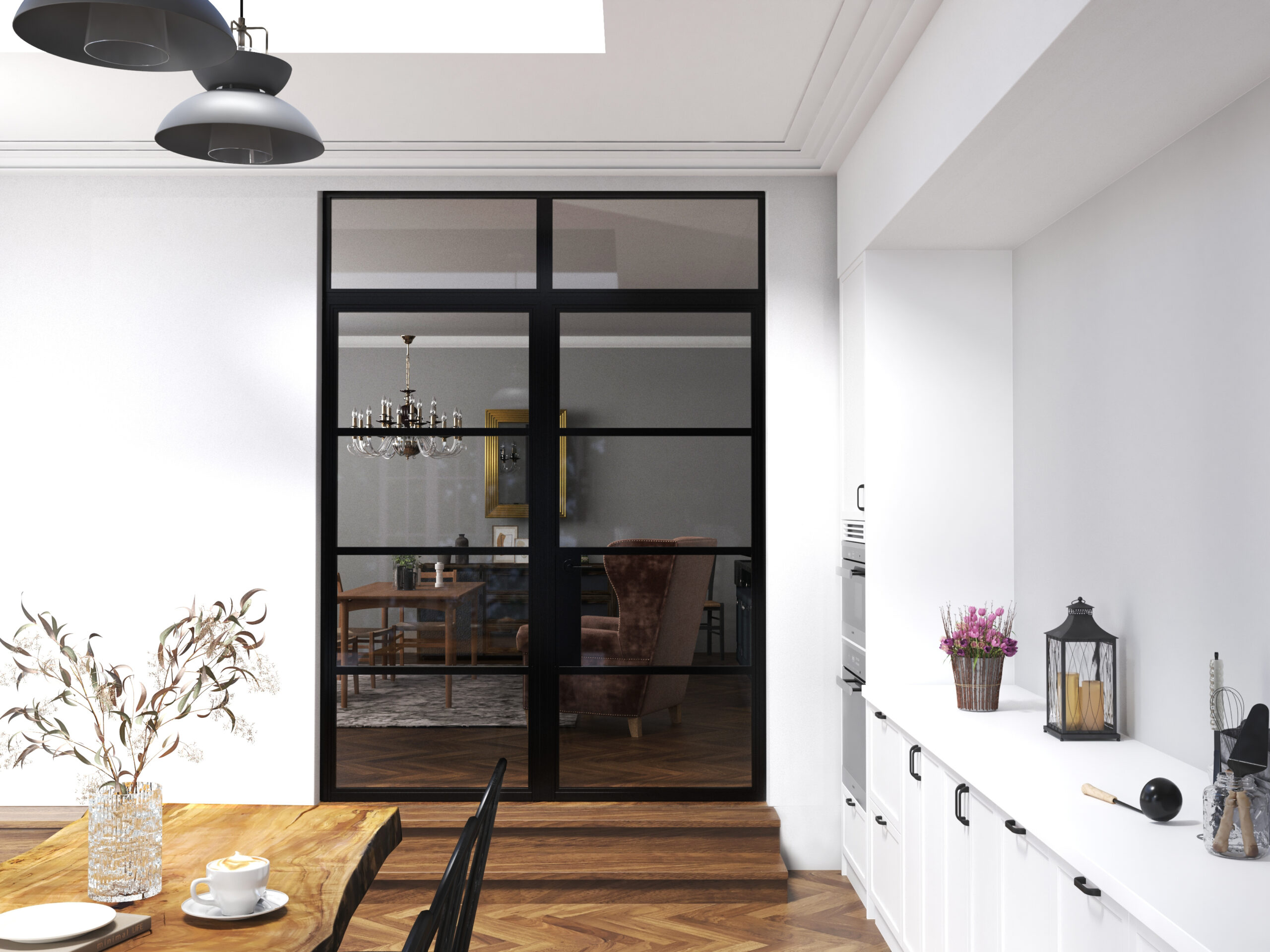 Aluminium internal French doors with fan lights are designed for taller openings where proportion, light, and balance are essential. By adding a fixed glazed section above the doors, this configuration increases height, enhances natural light, and creates a strong architectural feature within an interior.