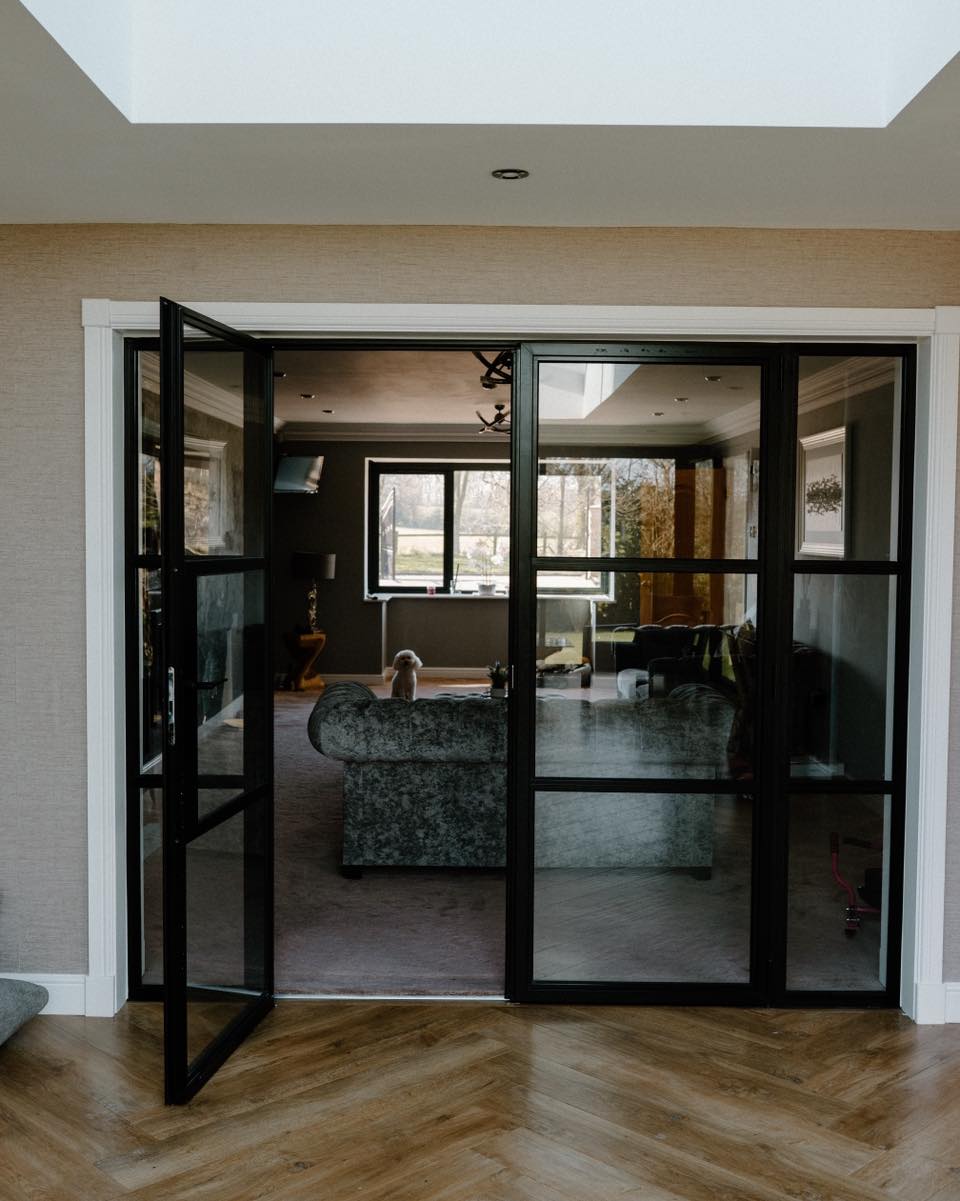 The Raferty Project in York focused on opening up a key living space while maintaining strong architectural definition. The brief was to introduce larger glazed openings to maximise natural light and improve flow, without losing the clean lines and structured feel of the interior. To achieve this, we installed a set of sliding French doors with fixed side screens, creating a wide, balanced glazing arrangement that feels both refined and practical.